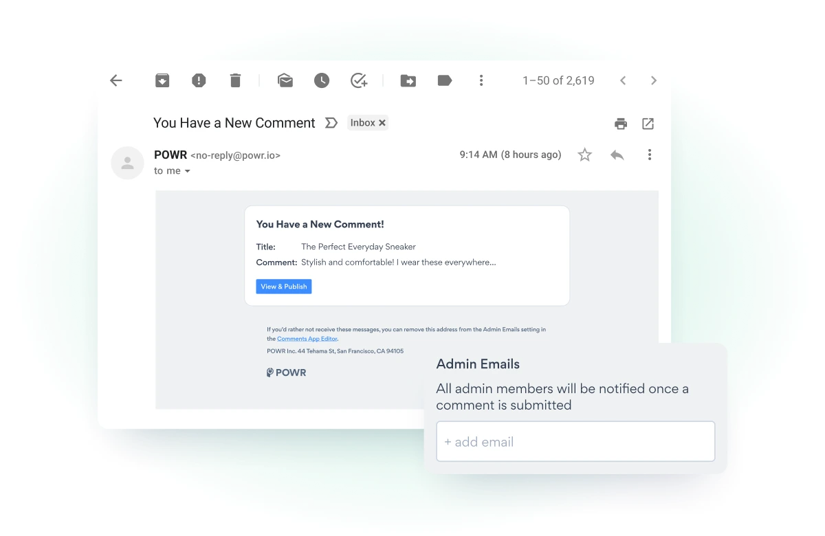 Reciba alertas por correo electrónico sobre nuevos comentarios, calificaciones y reseñas para que pueda responder a los comentarios rápidamente.