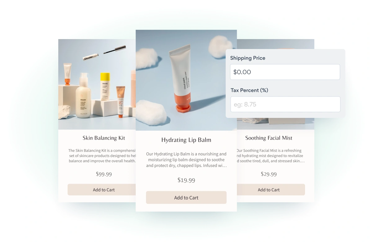 Add custom tax and shipping costs that are calculated at checkout.