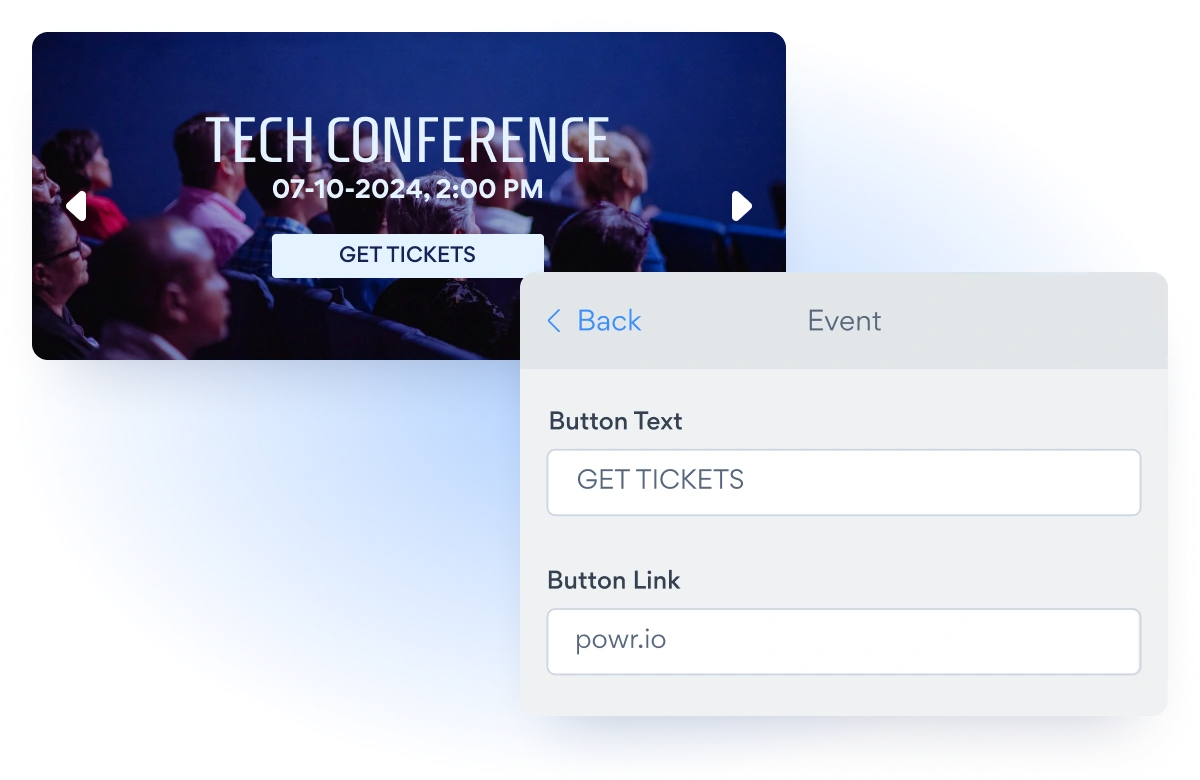 With POWR’s free multimedia slider app, you get great customization tools, including advanced options. To add different videos, photos, logos, and text, you can drag and drop these elements into your intended areas, customizing the look.